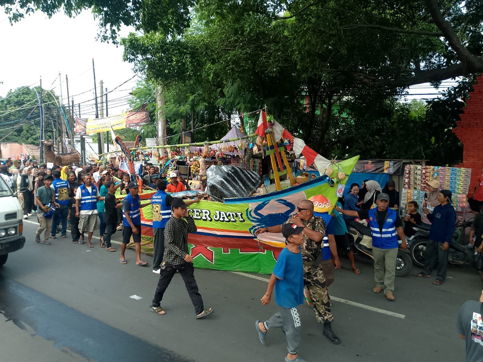 Boneka raksasa Condong, ikon utama perayaan yang melambangkan keharmonisan manusia dan alam, menjadi sorotan warga sepanjang rute perjalanan.